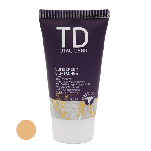 کرم ضد آفتاب رنگی توتال درم SPF50 مدل 2 مناسب پوست های چرب حجم 50 میلیلیتر